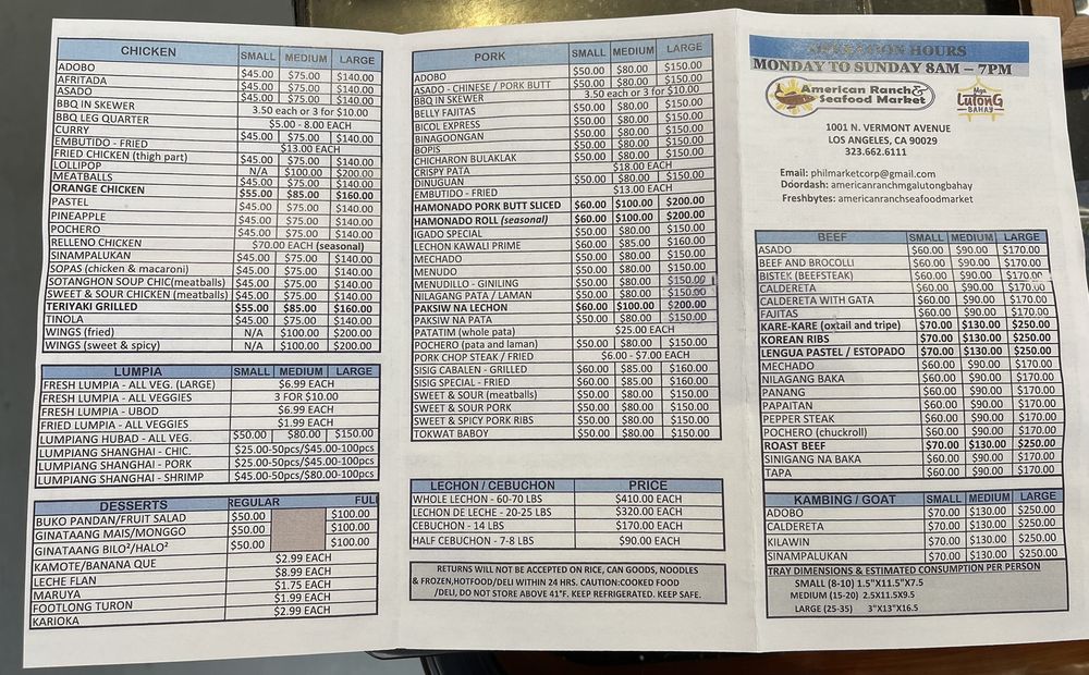 "Mga Lutong Bahay" is a seafood restaurant located at 1001 N Vermont Ave Los Angeles, CA 90029. They offer a range of services from reservations to delivery and takeout, catering to a variety of preferences. With limited vegetarian options, they cater well to seafood lovers. The restaurant is casual with a moderate noise level, making it suitable for groups and families with kids. They serve breakfast, brunch, lunch, and dinner, providing a diverse menu for all times of the day. Offering outdoor seating, Wi-Fi, and alcohol, "Mga Lutong Bahay" ensures a pleasant dining experience. Whether you're looking for a quick meal or a leisurely dining experience, this restaurant has something for everyone. The friendly staff and happy hour specials add to the overall appeal of this seafood hotspot.